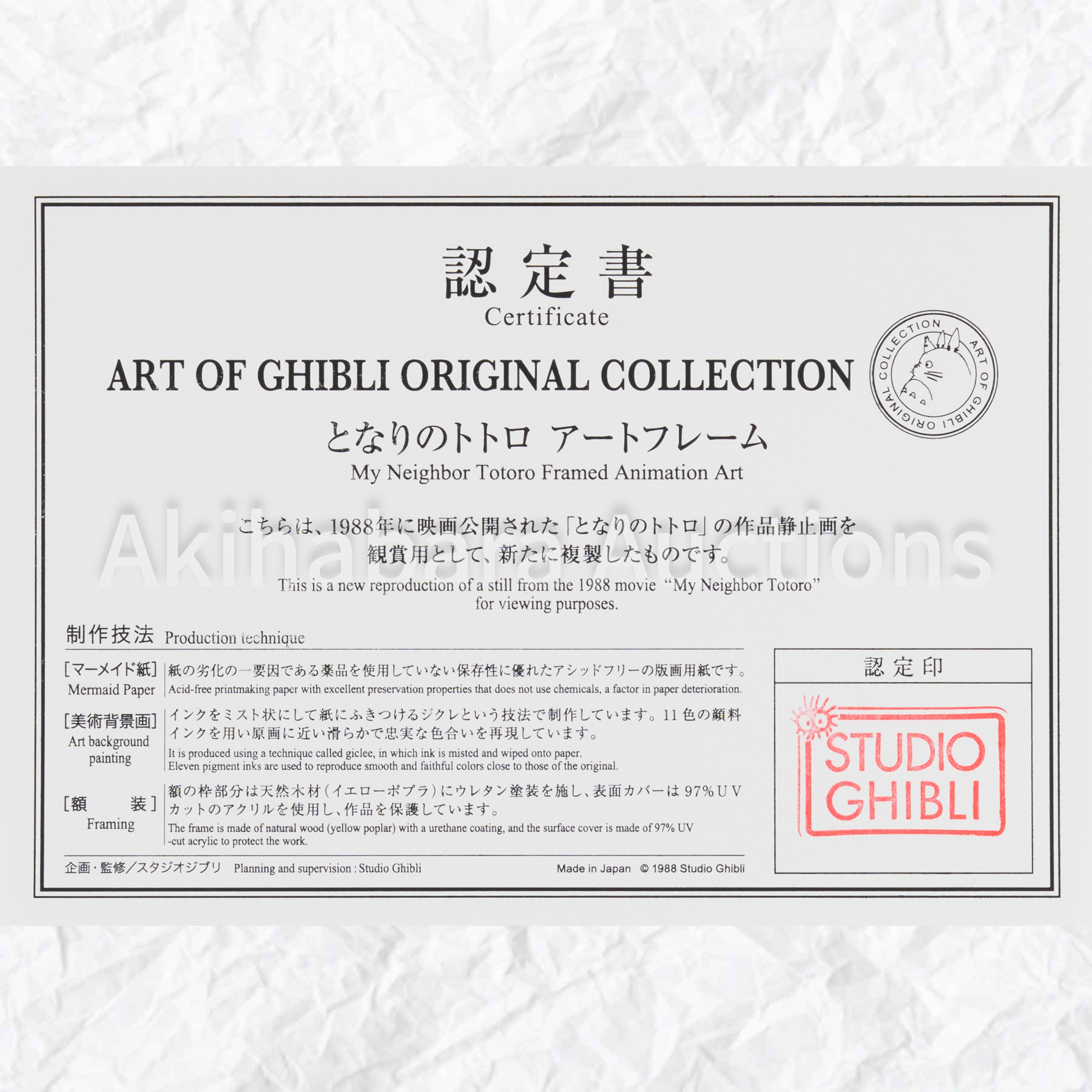 Lot 089 となりのトトロ アートフレーム「うろの中」