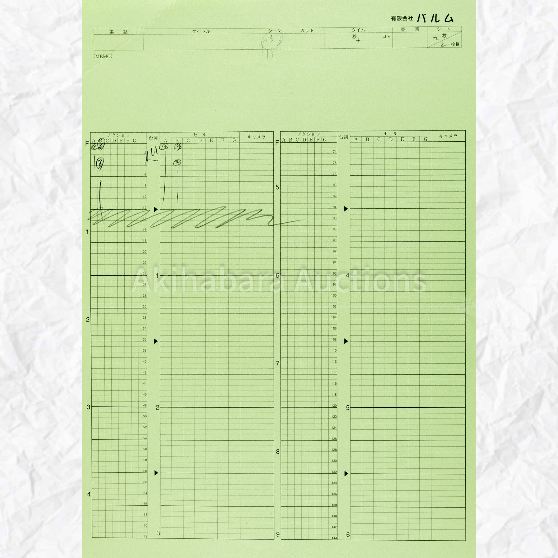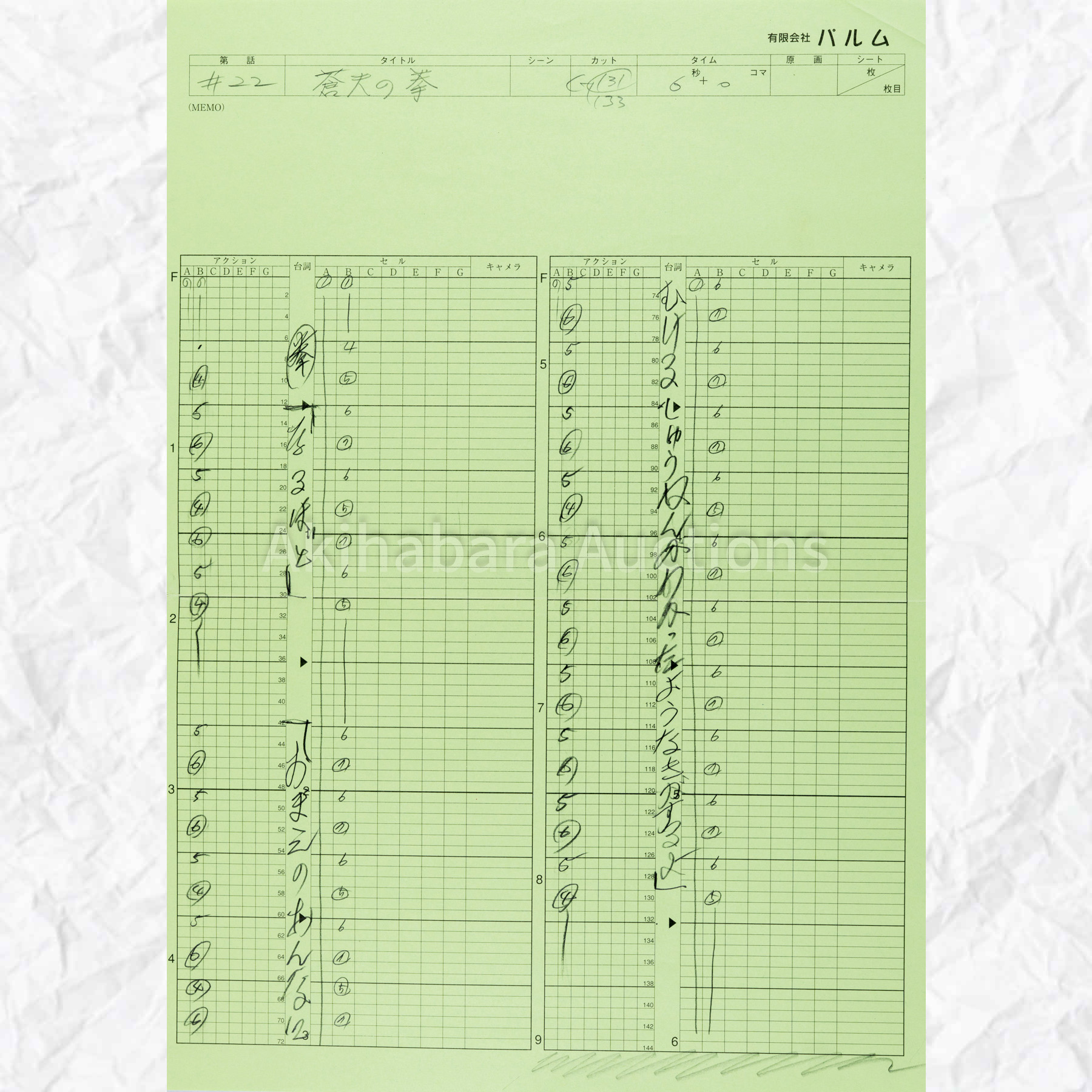 Lot 205 蒼天の拳 原画 修正原画 タイムシート 7枚セット