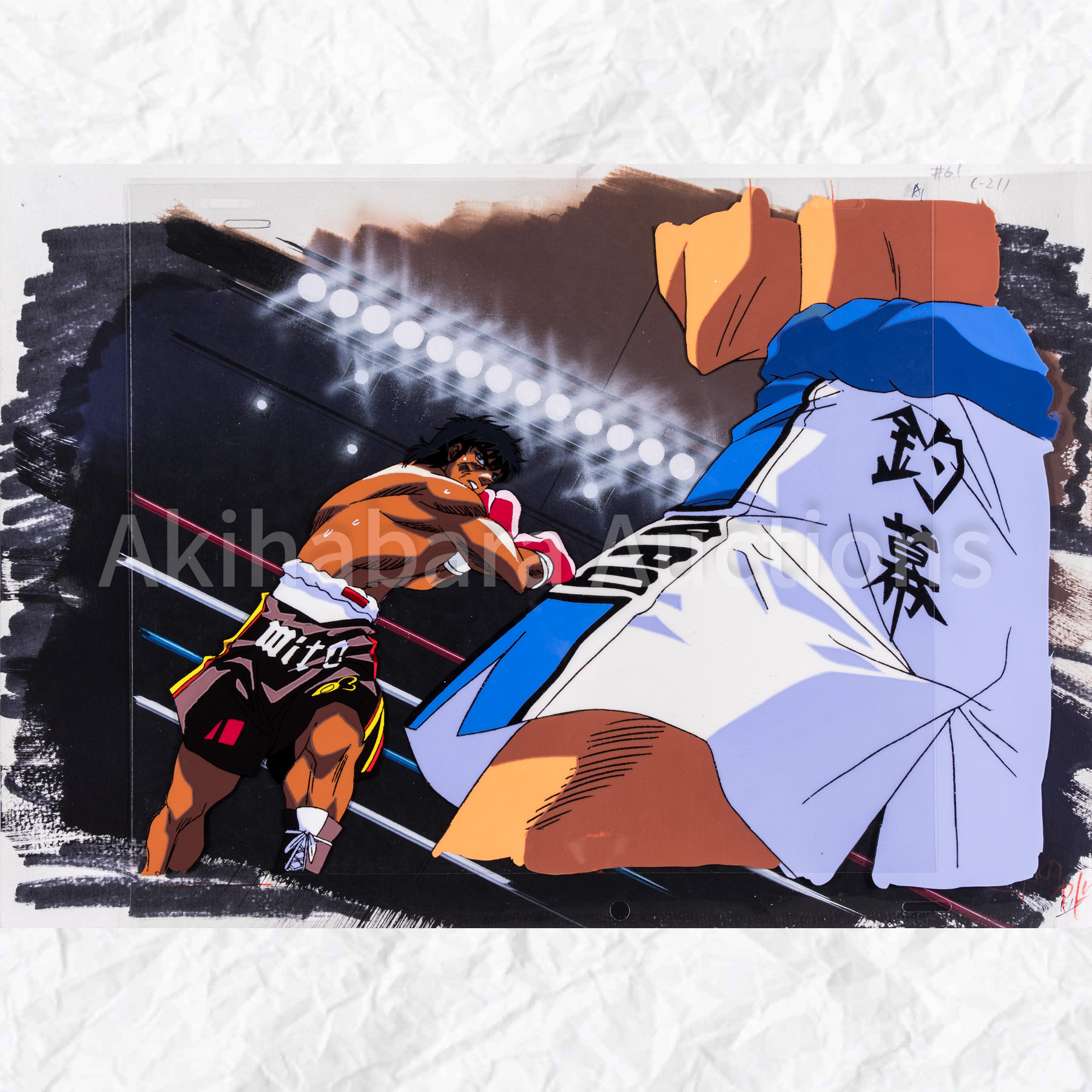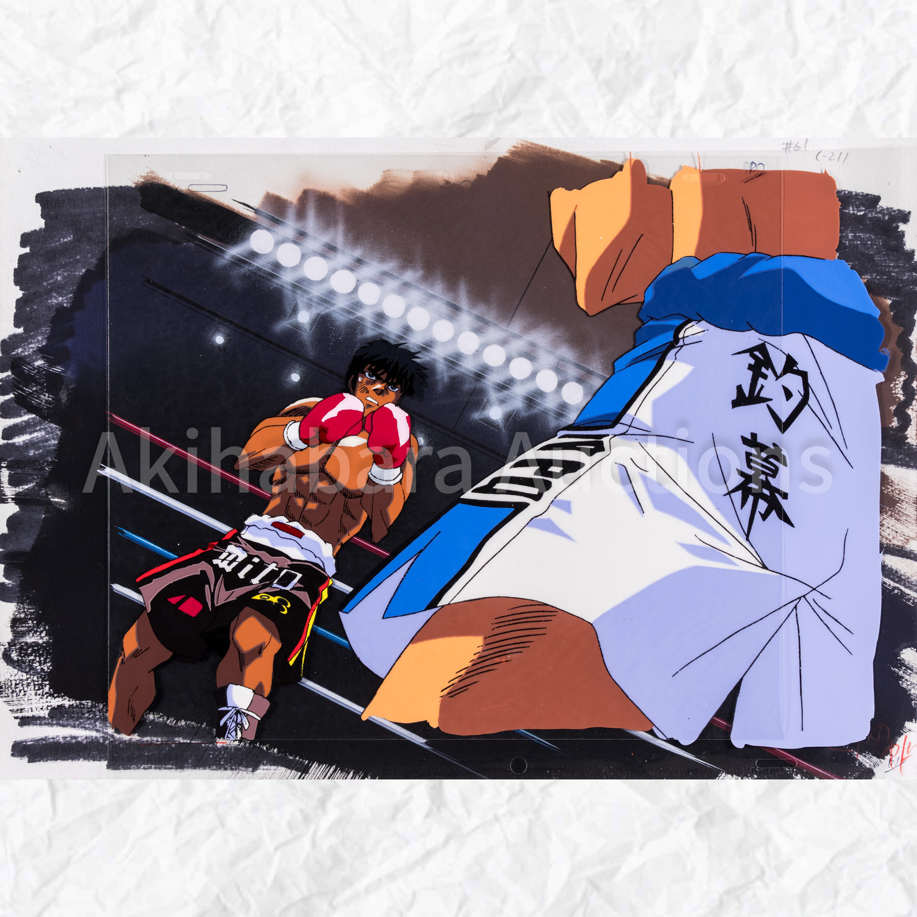 Lot 220 はじめの一歩 セル画 x2 動画 x2, 合致背景 セット