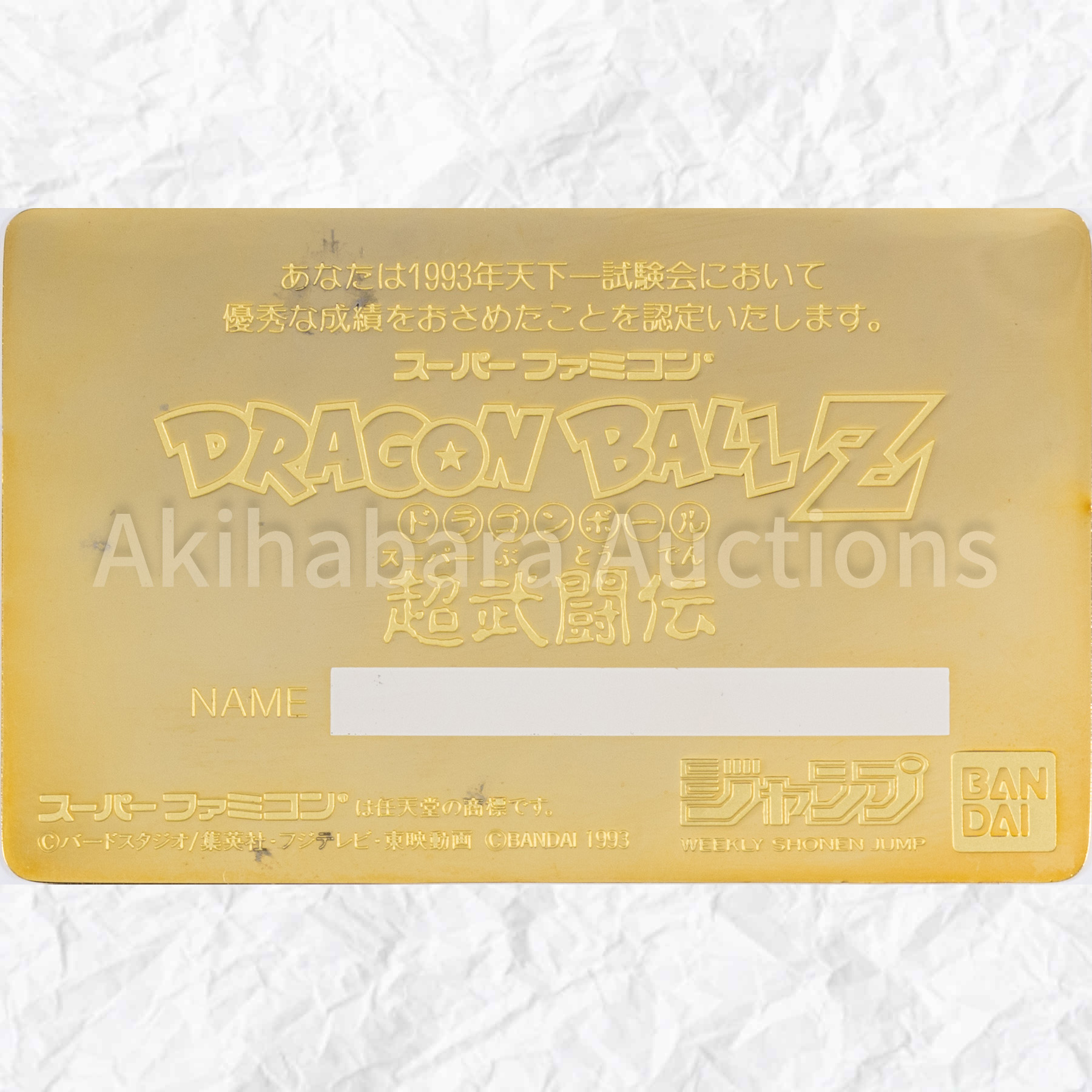 Lot 269 DRAGON BALL Z ”天下一試験会” OFFICIAL CARD (大会入賞懸賞品 / METAL CARD)